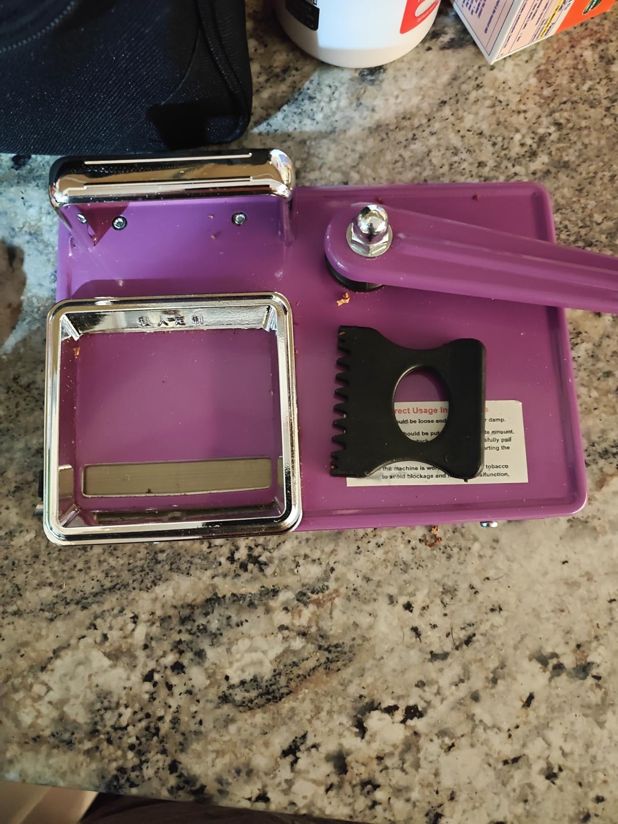 The Purple Cigarette Rolling Machine is fantastic – dual-track upgrade rolls perfect 8mm cigarettes quickly and tightly every time. Matte finish looks great and doesn't show fingerprints. Easy to clean, no jams. Makes rolling enjoyable instead of a hassle – best machine I've used!