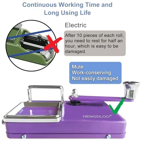 This purple manual dual-track cigarette rolling machine rolls perfect 8.0mm diameter cigarettes (80-100mm lengths) with smooth, consistent results. Upgrade design prevents jams and ensures tight packs. Matte purple finish adds style and durability. Easy to use and clean – ideal for personal rolling with professional quality and no frustration.